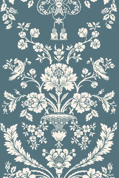 This opulent damask wallpaper is named after the place where its pattern was first produced, back in 1793. Today, its design of abundant blooms, preening birds and lush foliage adds a feeling of luxury to homes of all kinds.